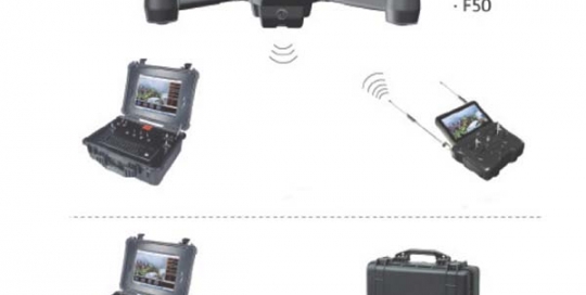 The quadcopter F50 can be equipped with professional airborne equipment, airborne super low illumination black and white camera, airborne infrared night vision camera, airborne professional camera with 16 million pixels as well as airborne professional 3D camera with uniaxial holder, which can rotate 0-105 degrees up and down.